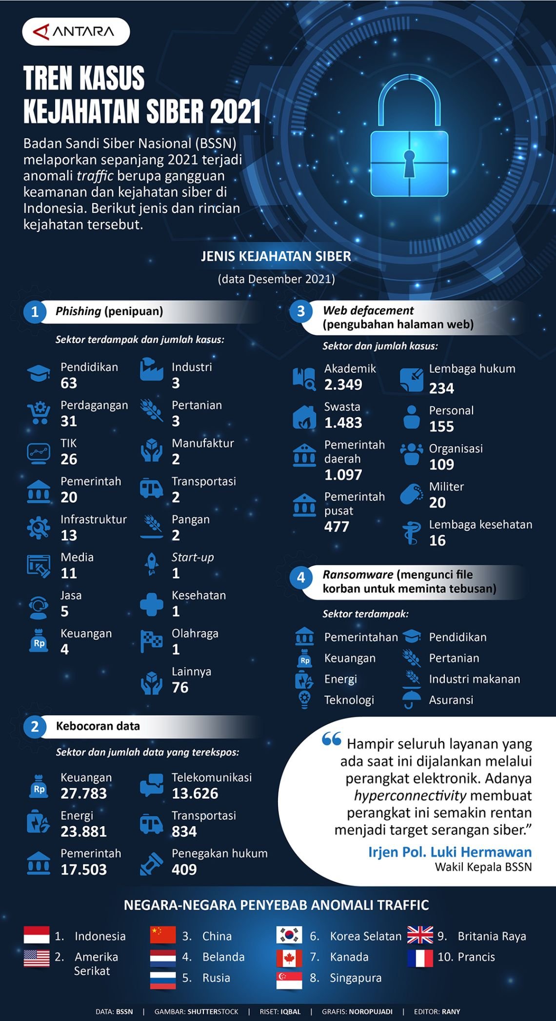 - Ancaman terhadap Keamanan Nasional: Serangan siber dapat melumpuhkan infrastruktur penting, seperti jaringan listrik, sistem transportasi, dan lembaga keuangan. Ini dapat menyebabkan gangguan ekonomi yang signifikan dan mengancam keamanan nasional.