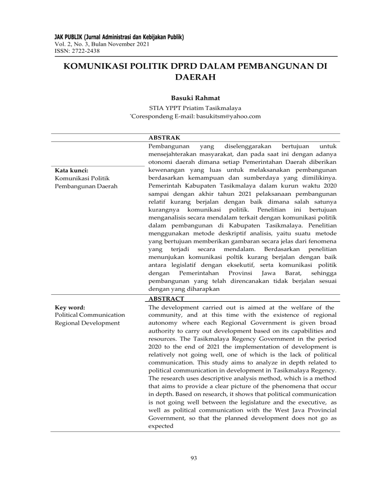 Dinamika Politik Pembangunan Daerah