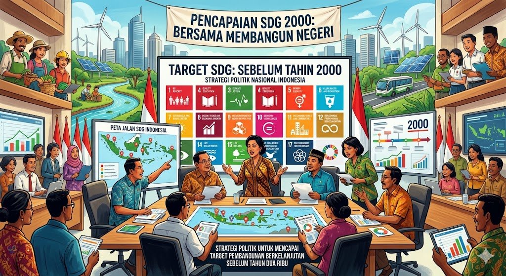 Pencapaian target Pembangunan Berkelanjutan atau Sustainable Development Goals (SDGs) memerlukan sinergi politik yang kuat dan konsisten dari seluruh pemangku kepentingan. Di tengah tantangan perubahan iklim dan kesenjangan ekonomi, strategi politik nasional harus diarahkan pada kebijakan yang inklusif dan berorientasi jangka panjang guna memastikan agenda global ini dapat terealisasi tepat waktu sebelum tenggat tahun 2030.