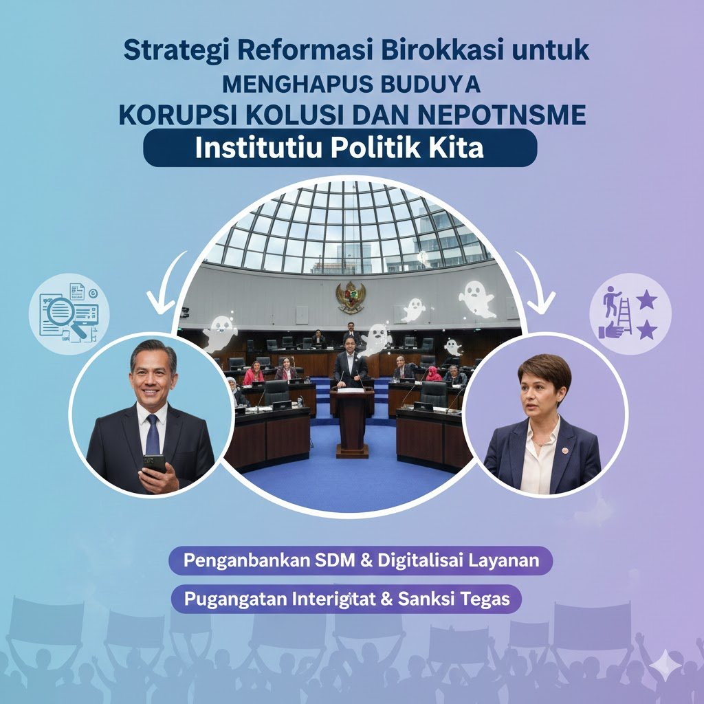 Upaya memberantas budaya Korupsi, Kolusi, dan Nepotisme (KKN) dalam institusi politik Indonesia memerlukan langkah-langkah sistematis yang lebih dari sekadar penegakan hukum secara reaktif. Reformasi birokrasi harus menyentuh akar permasalahan yang sering kali bersembunyi di balik prosedur administratif yang rumit dan kurangnya transparansi. Dengan melakukan transformasi struktural, institusi politik dapat mengembalikan kepercayaan publik dan memastikan bahwa pelayanan negara berjalan secara profesional tanpa intervensi kepentingan pribadi atau golongan.